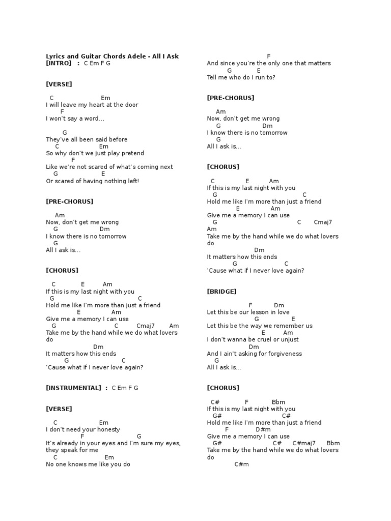 Lyrics And Guitar Chords Adele Song Structure Song Forms