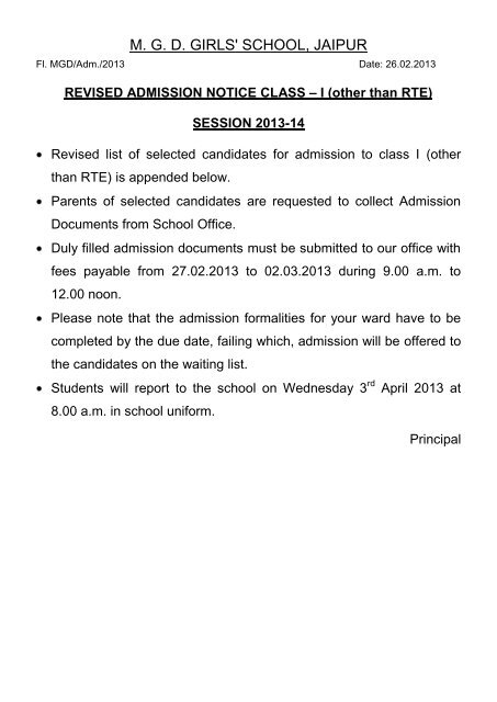Revised Admission List Class I