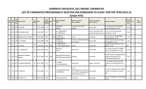 Under Rte Kendriya Vidyalaya Gill Nagar