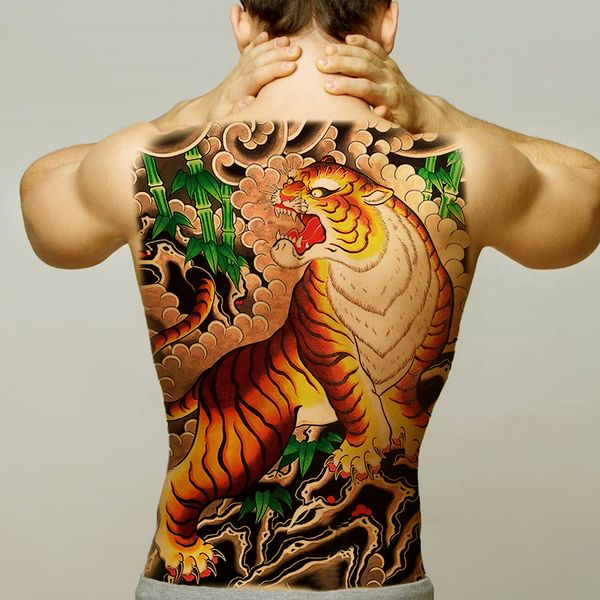 Full Back Large Tiger Down The Mountain Waterproof Temporary Tattoo Men Women Sexy Body Art Big The Flash Tattoo Designs Tatoos Temporary Tattoo