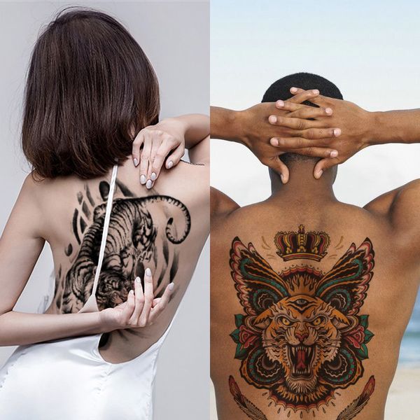 Cool Tiger Large Waterproof Temporary Tattoo Sticker For Woman Man Full Back Body Art Design Big Size Feather Butterfly Crown Flower Tattoos Search