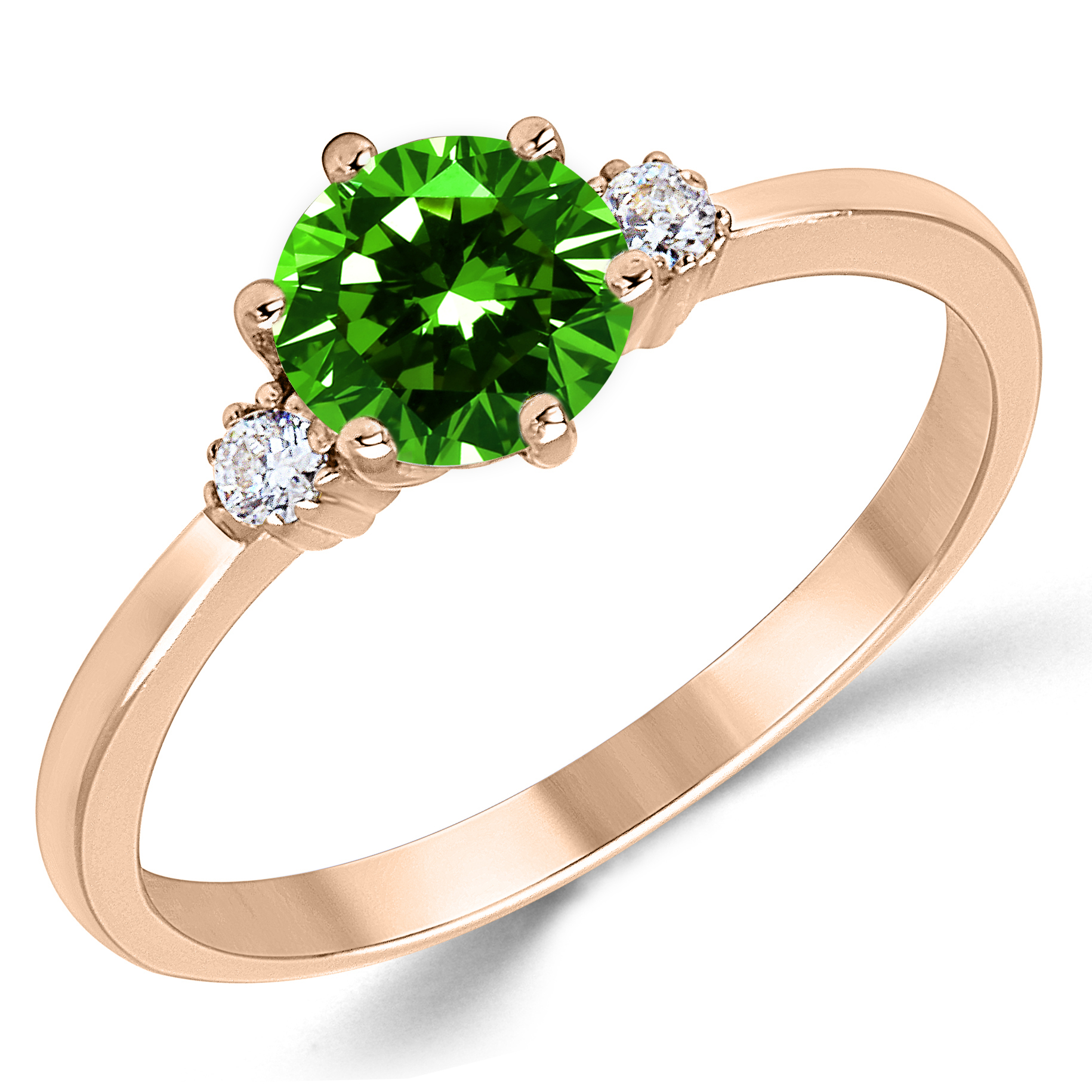 Details About 14k Solid Pink Rose Gold Lab Created Emerald Three Stone Engagement Ring