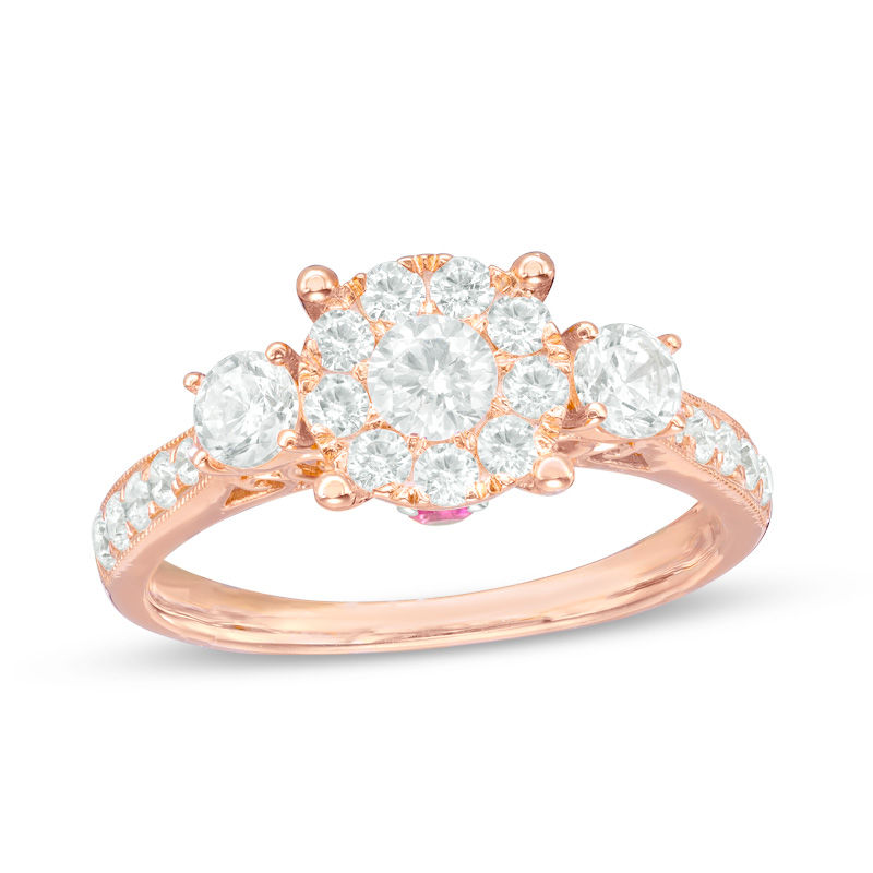 7 8 Ct T W Diamond And Pink Sapphire Three Stone Engagement Ring In 10k Rose Gold Zales
