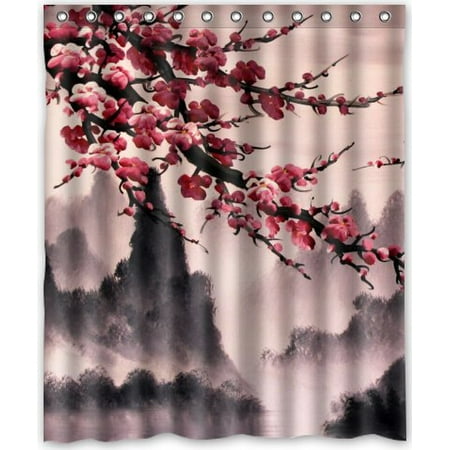 Home Decoration Ideas Cherry Blossom Fabric Shower Curtain With
