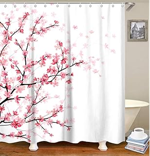 Hellodecor Cherry Blossom Shower Curtain Polyester Fabric Bathroom