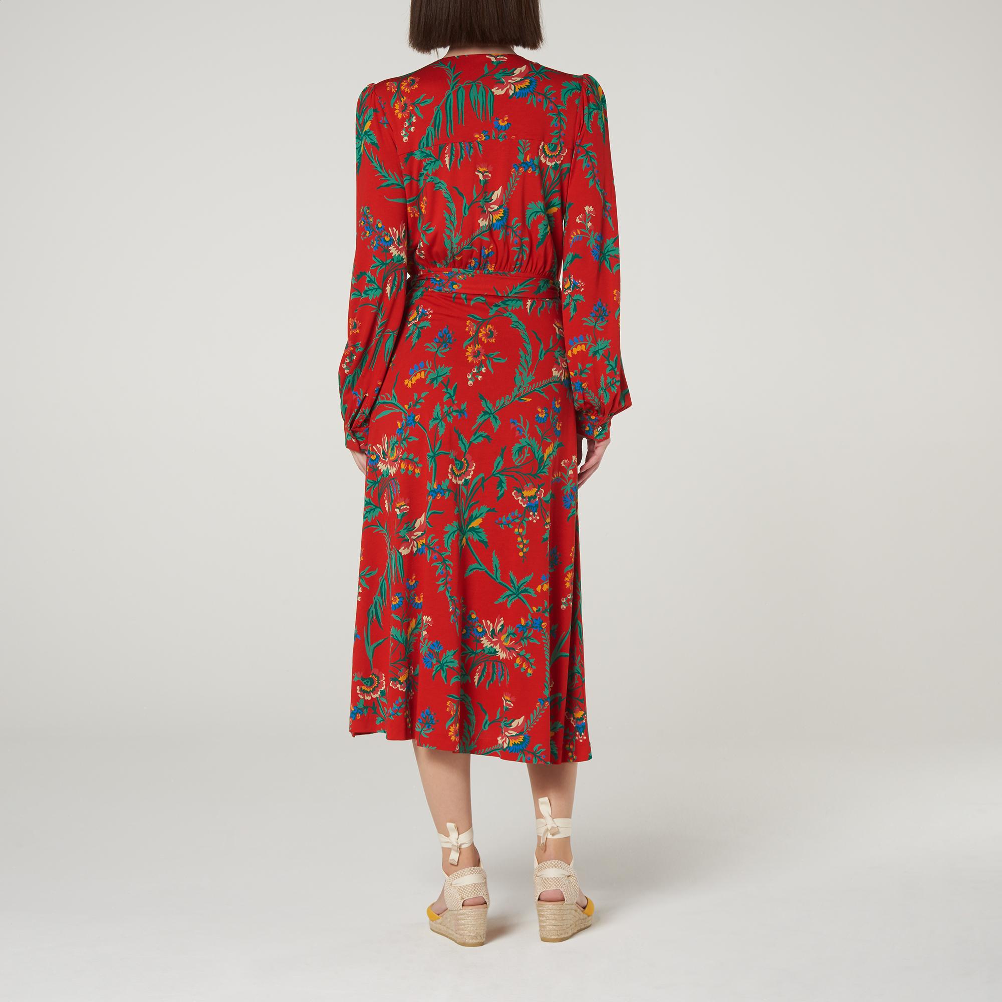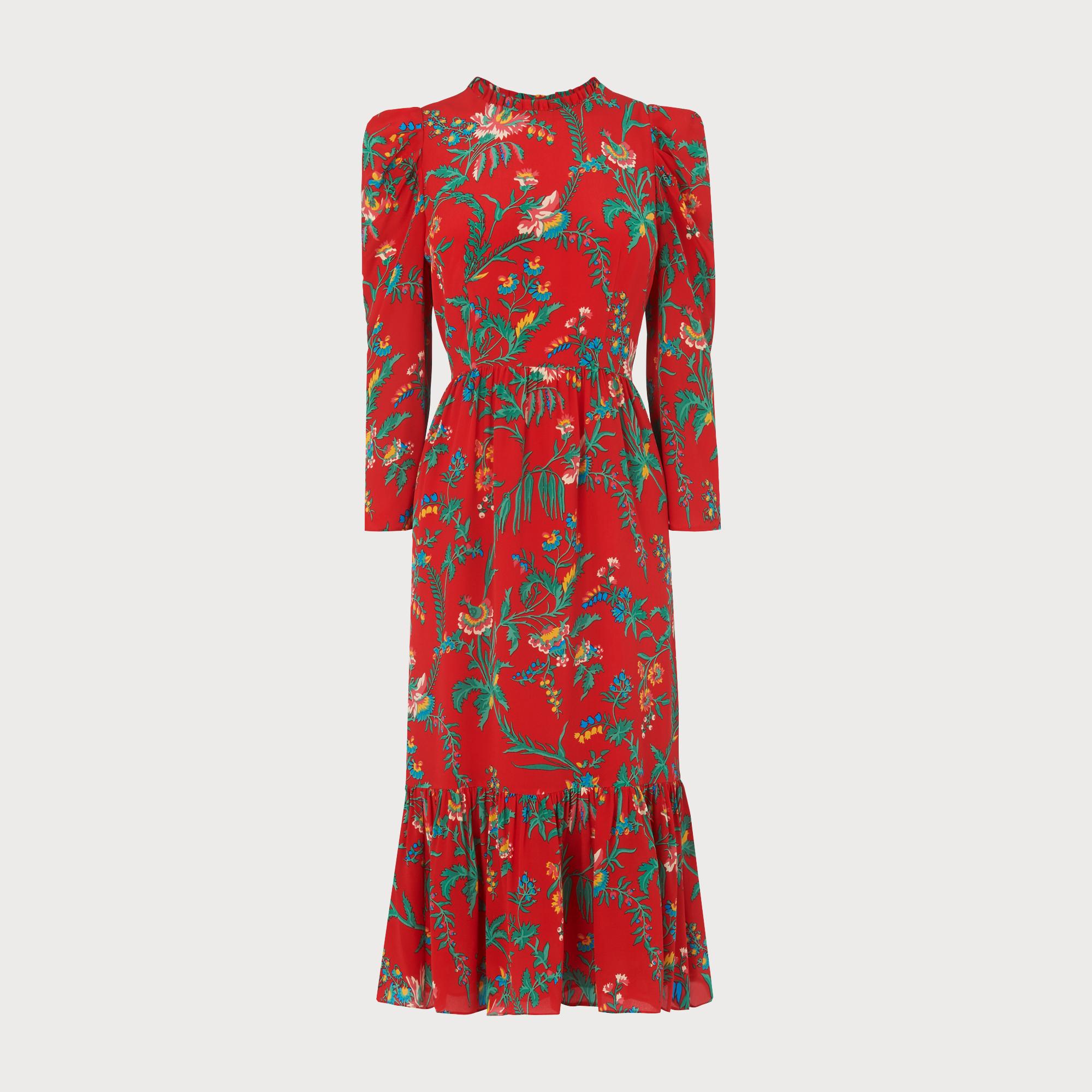 Alissa Red Wildflower Print Silk Midi Dress