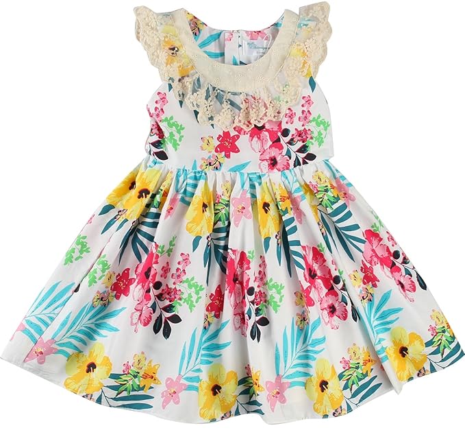 Sharequeen Girls Sleeveless Dress Children Dress For Flower Lace Rose Embroidery Cotton Ruffle Design Swing Party Dresses