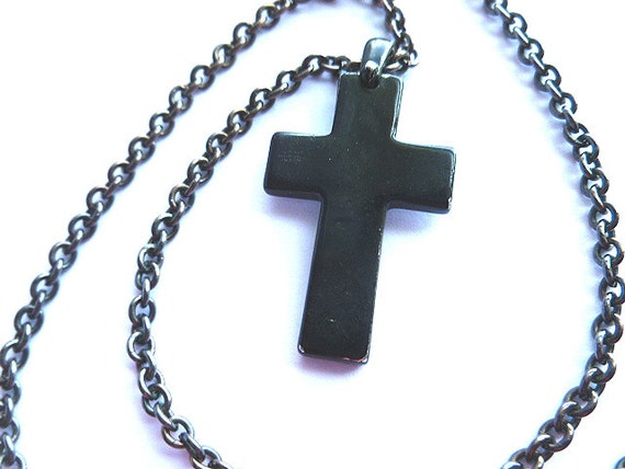 Yeidid International Stainless Steel Black Cross Pendant Chain