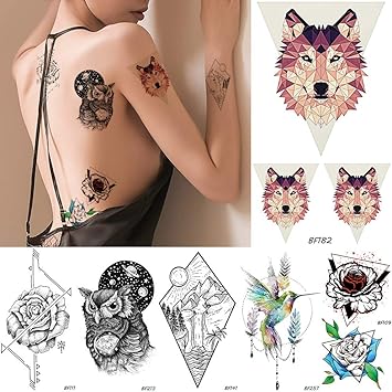 Baofuli Watercolor Painting Flower Art Tattoos Flash Triangle Rose Temporary Anchor Whale Galaxy Fake Tattos Sexy Body Arm Neck Create Your Own Tattoo